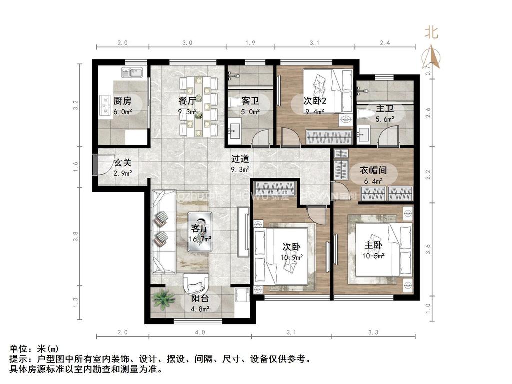 厅室3室2厅2卫2阳台