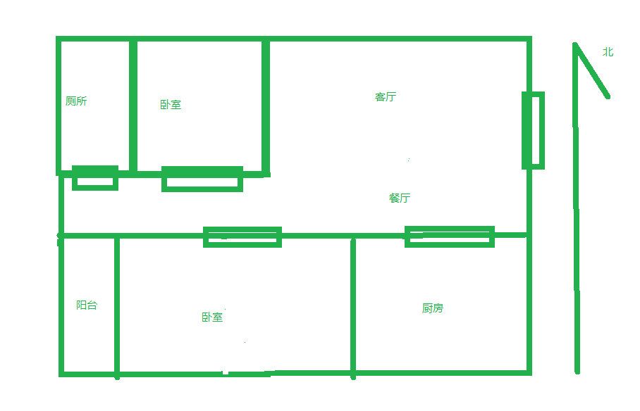 朝向北 建筑面积61㎡