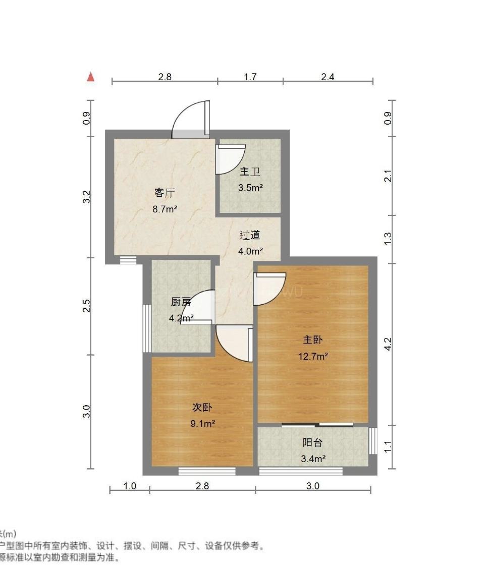 厅室2室1厅1卫1阳台
