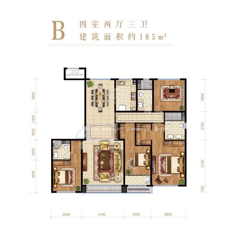 厅室4室2厅3卫1阳台