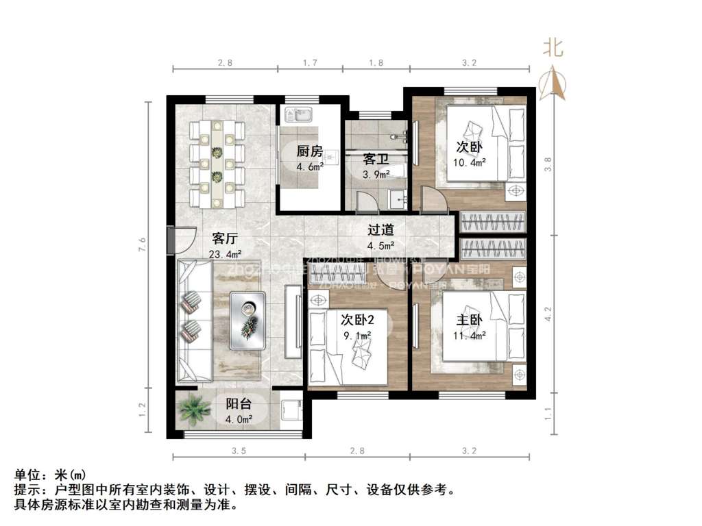 厅室3室2厅1卫1阳台
