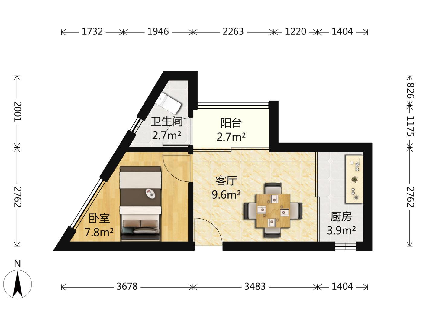 厅室1室1厅1卫0阳台