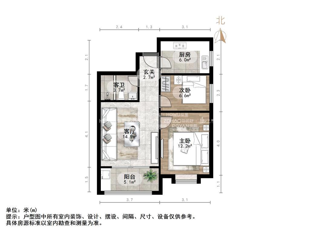 厅室2室1厅1卫1阳台