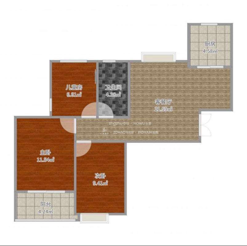厅室3室1厅1卫1阳台