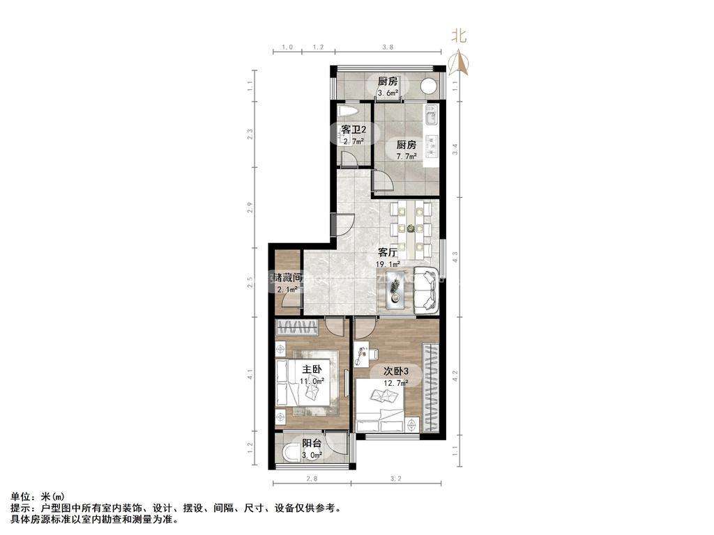 2、户型优势:南北卧室,客厅方正好用,单元对讲门,大院传达,安全性高!