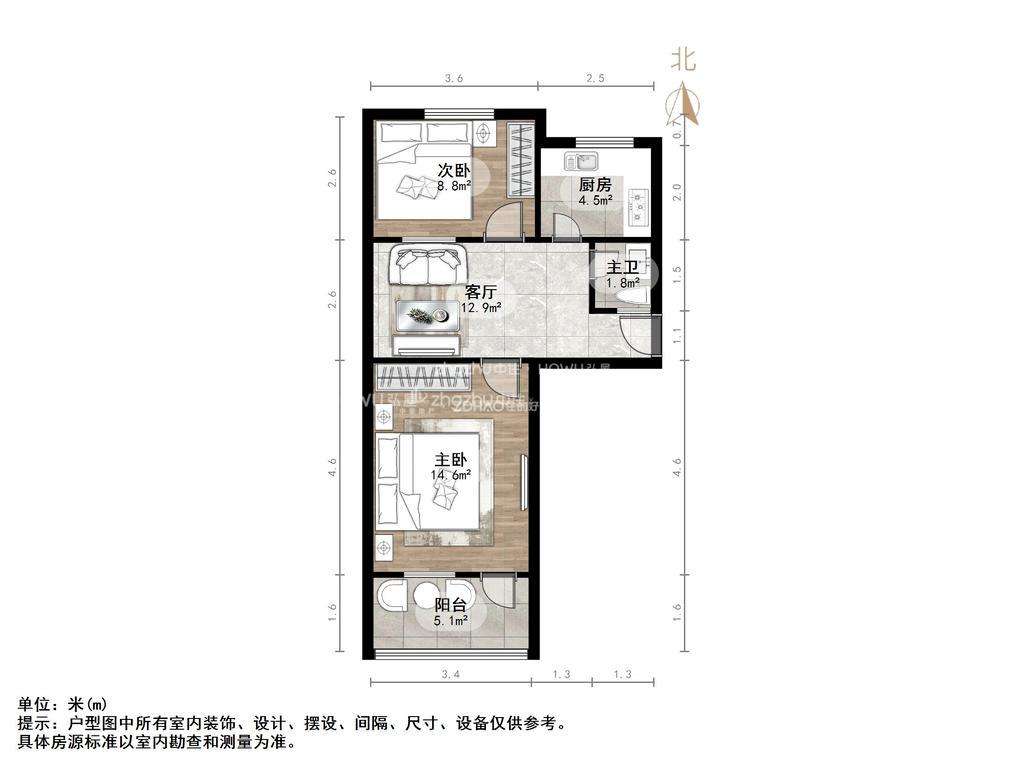 朝向南北 建筑面积55㎡