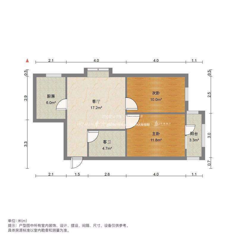 朝向南北 建筑面积66.64㎡