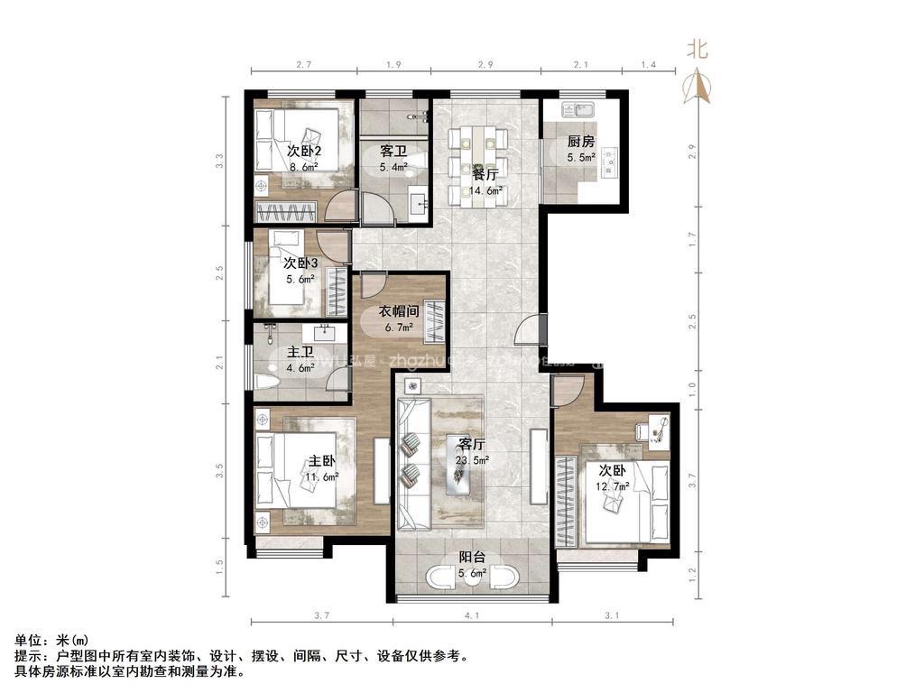 厅室4室2厅2卫1阳台