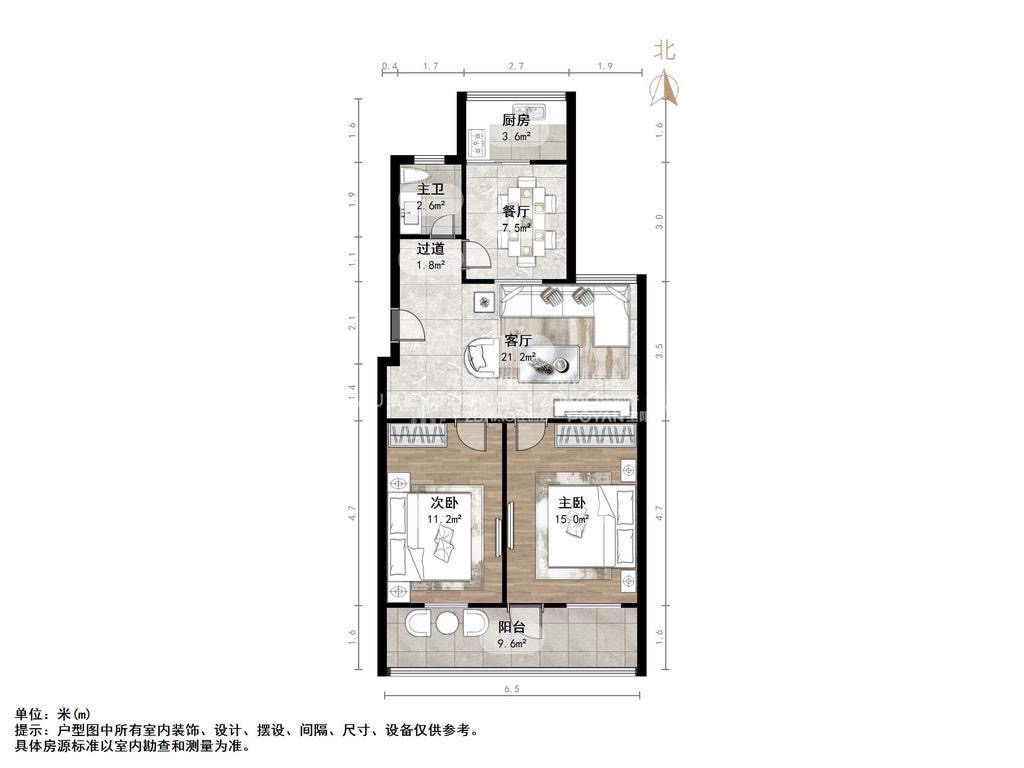 2、楼层朝向:中间楼层,南北通透,采光好。