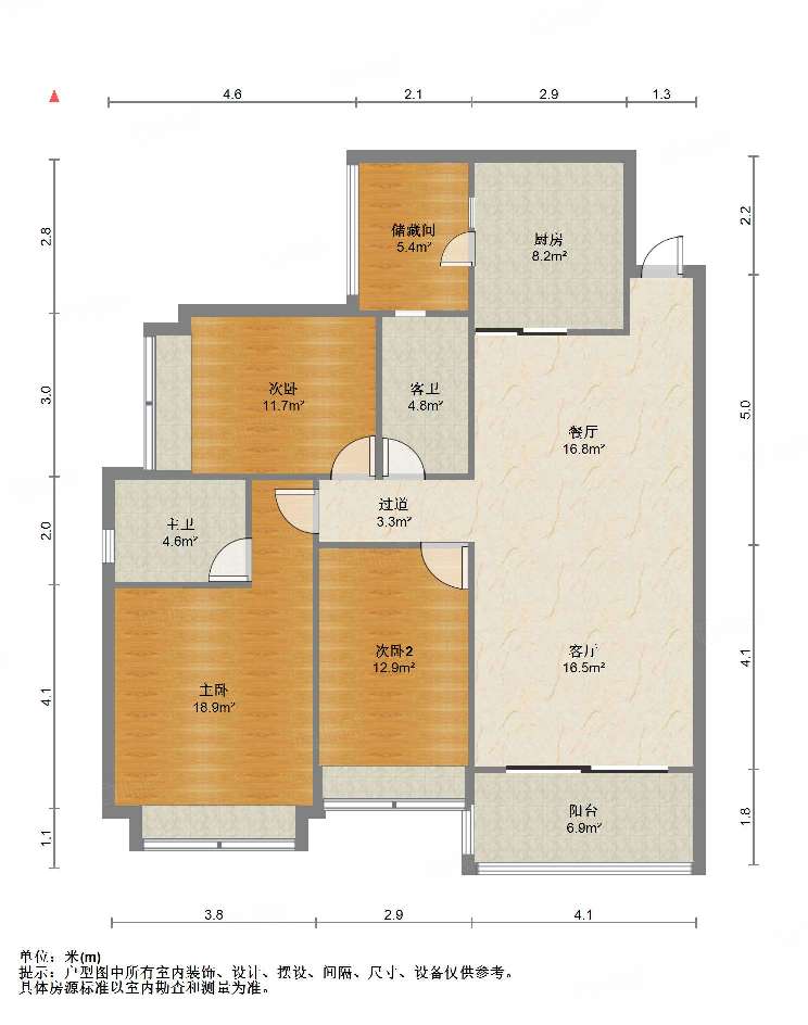 厅室3室2厅2卫1阳台