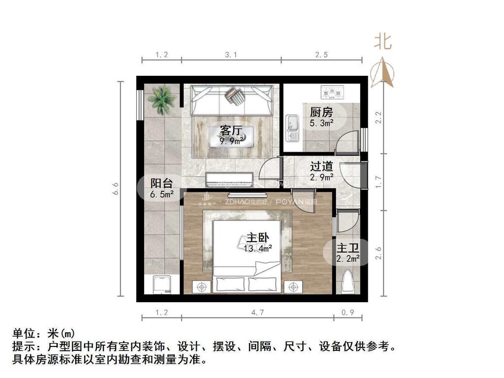 朝向南北 建筑面积53㎡