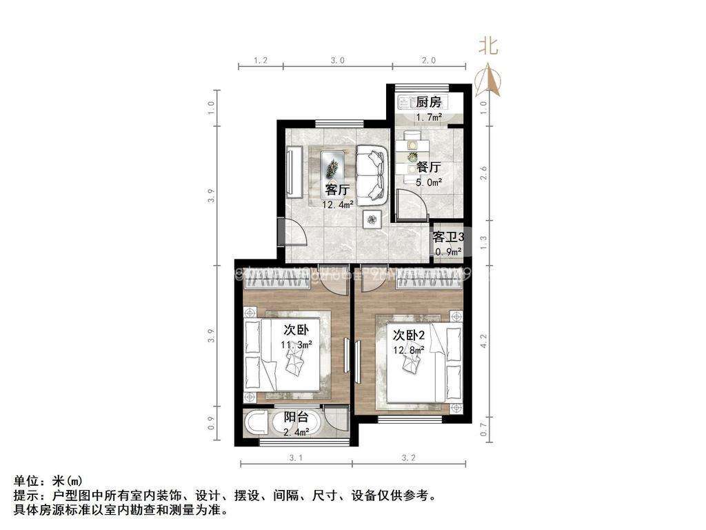 厅室2室1厅1卫1阳台
