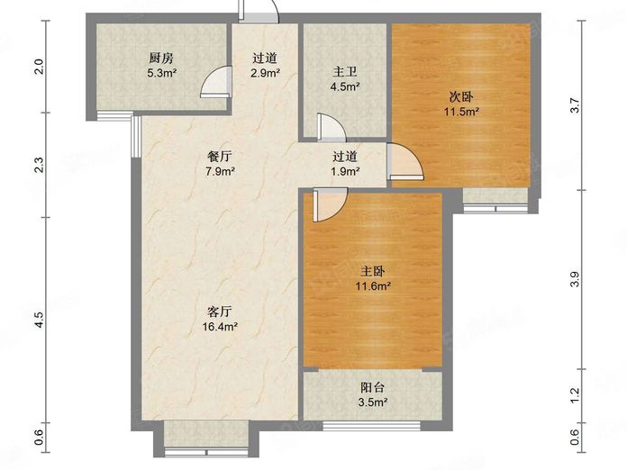 厅室2室2厅1卫1阳台