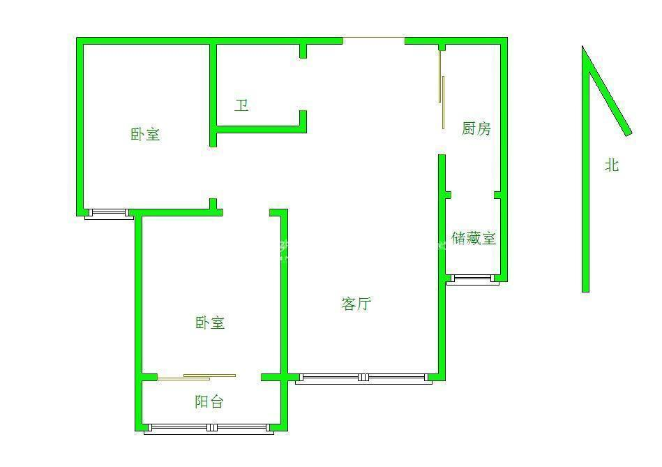 2、户型优势:两室两厅,南北通透,卧室朝阳
