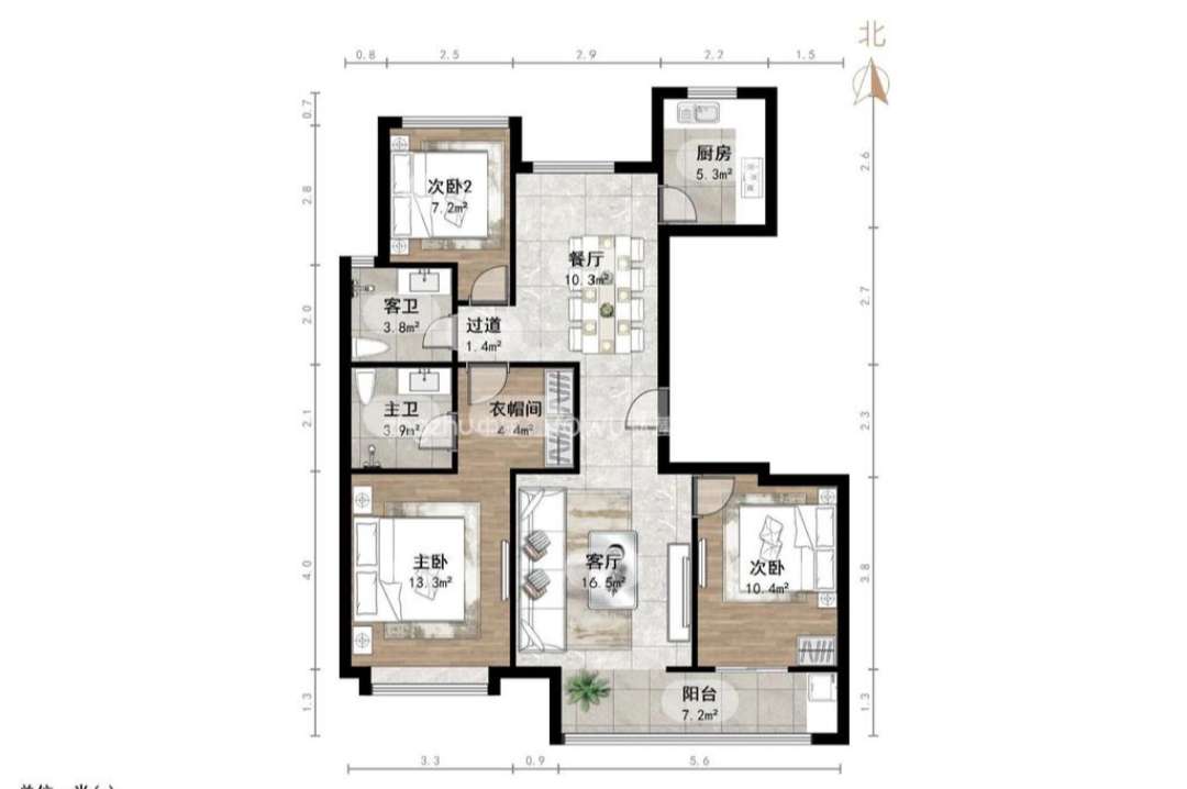 厅室3室2厅2卫1阳台