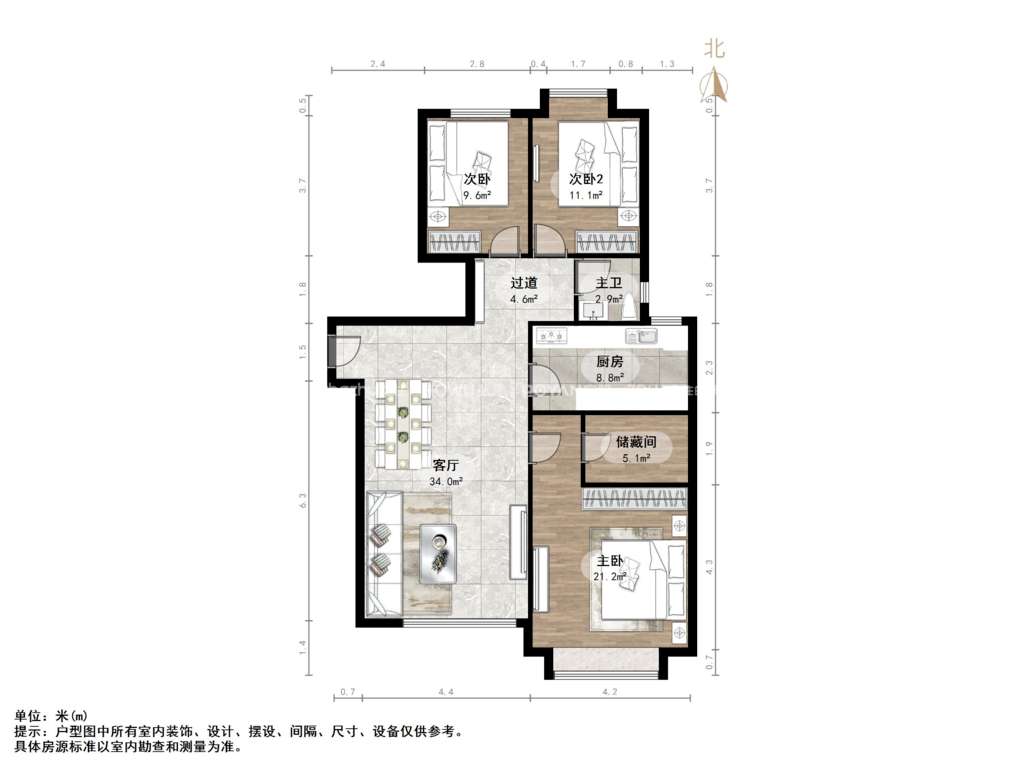 厅室3室2厅2卫2阳台
