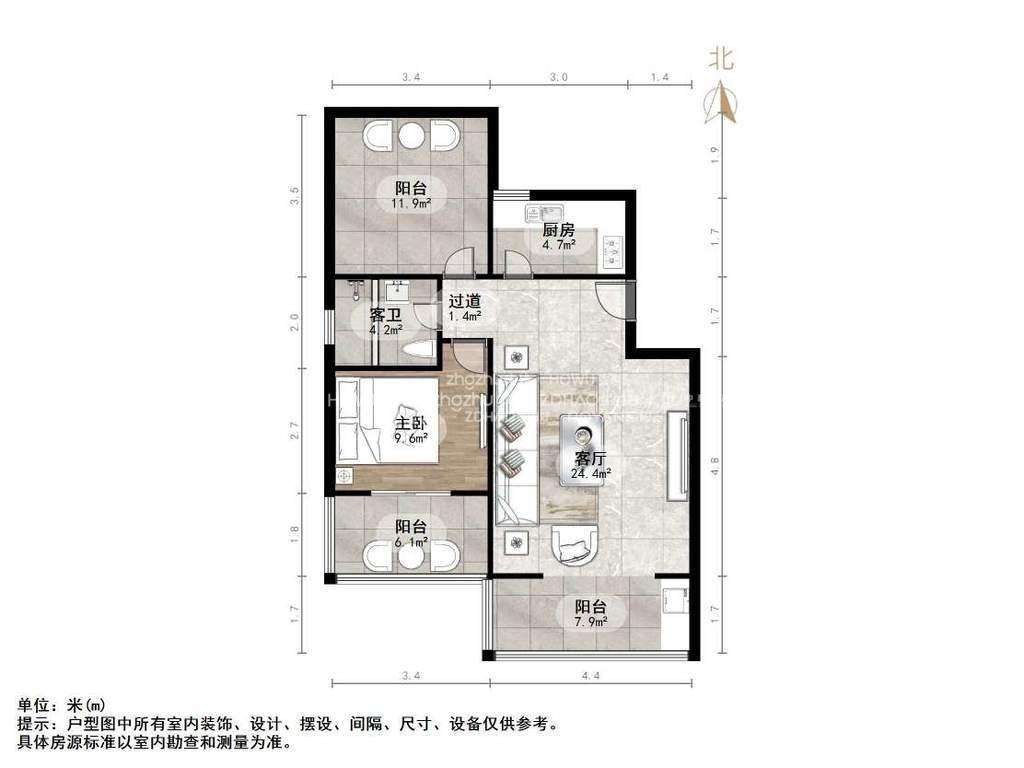 朝向南北 建筑面积63㎡