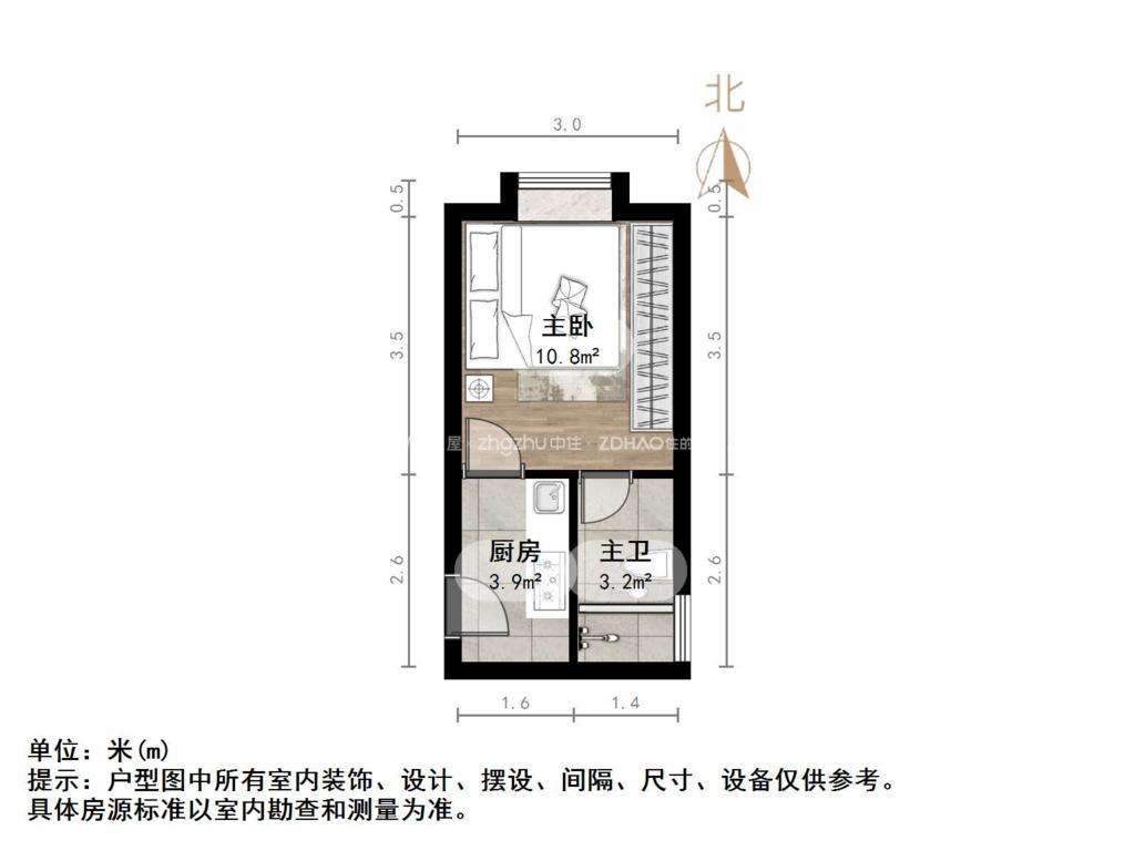 厅室1室1厅1卫1阳台