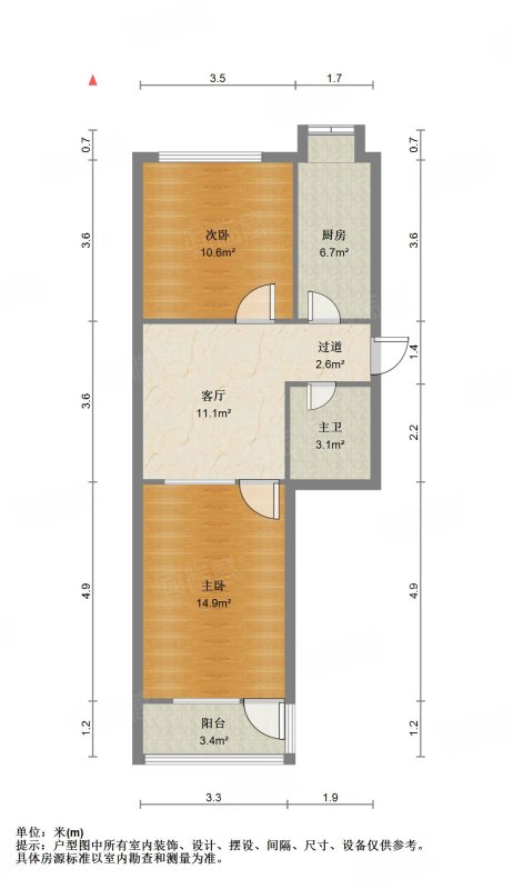 朝向南北 建筑面积61㎡