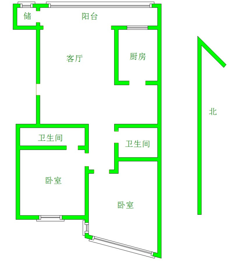 厅室2室2厅2卫1阳台
