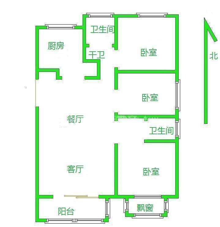 2、户型优势:三室两厅,南北卧室,客厅方正好用,单元对讲门,大院传达,安全性高!