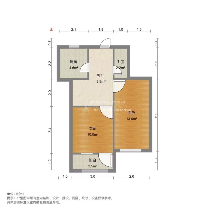 厅室2室1厅1卫1阳台