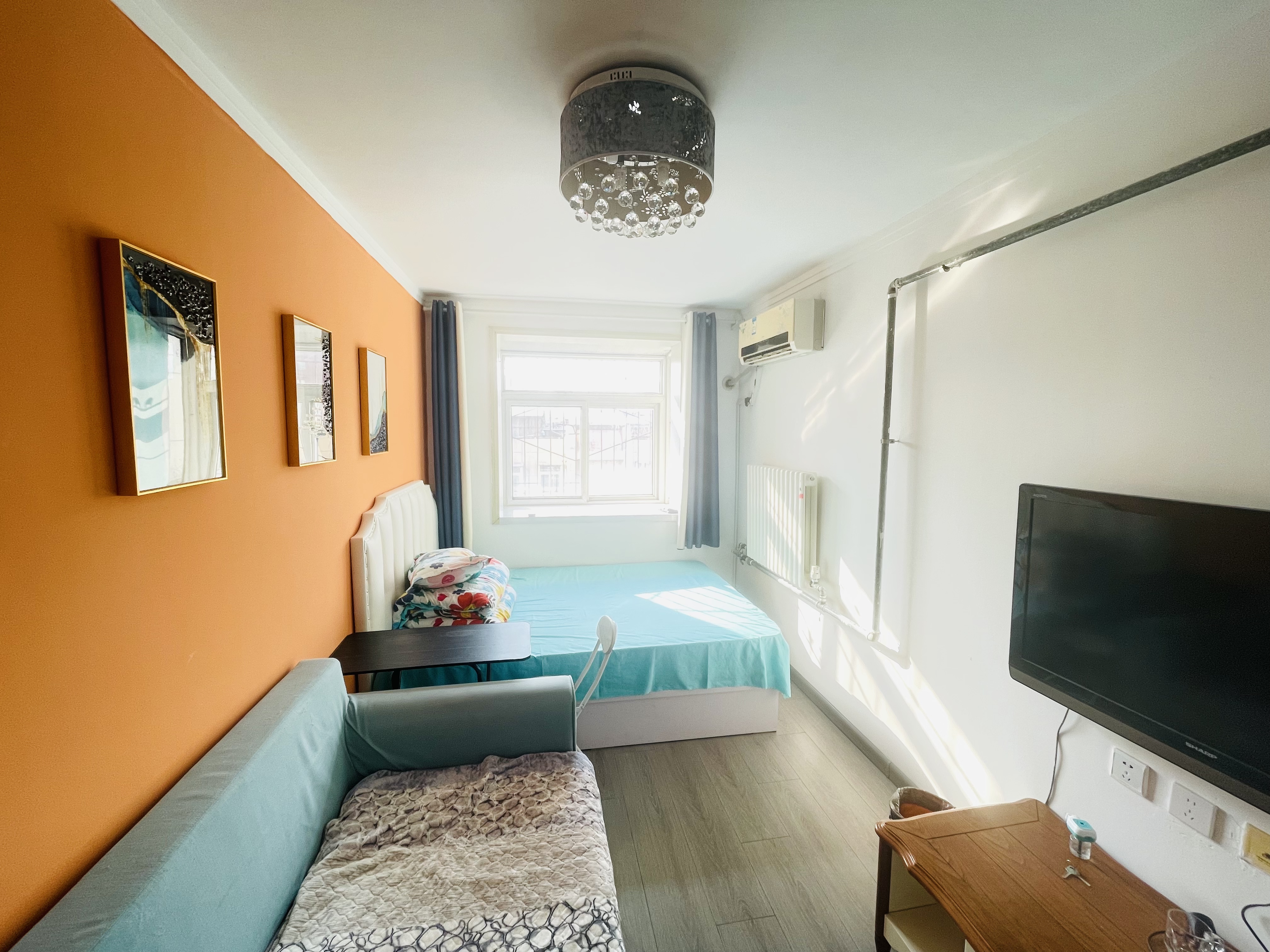 2、户型优势:2室1厅,南北卧室,客厅方正好用,单元对讲门,大院传达,安全性高!