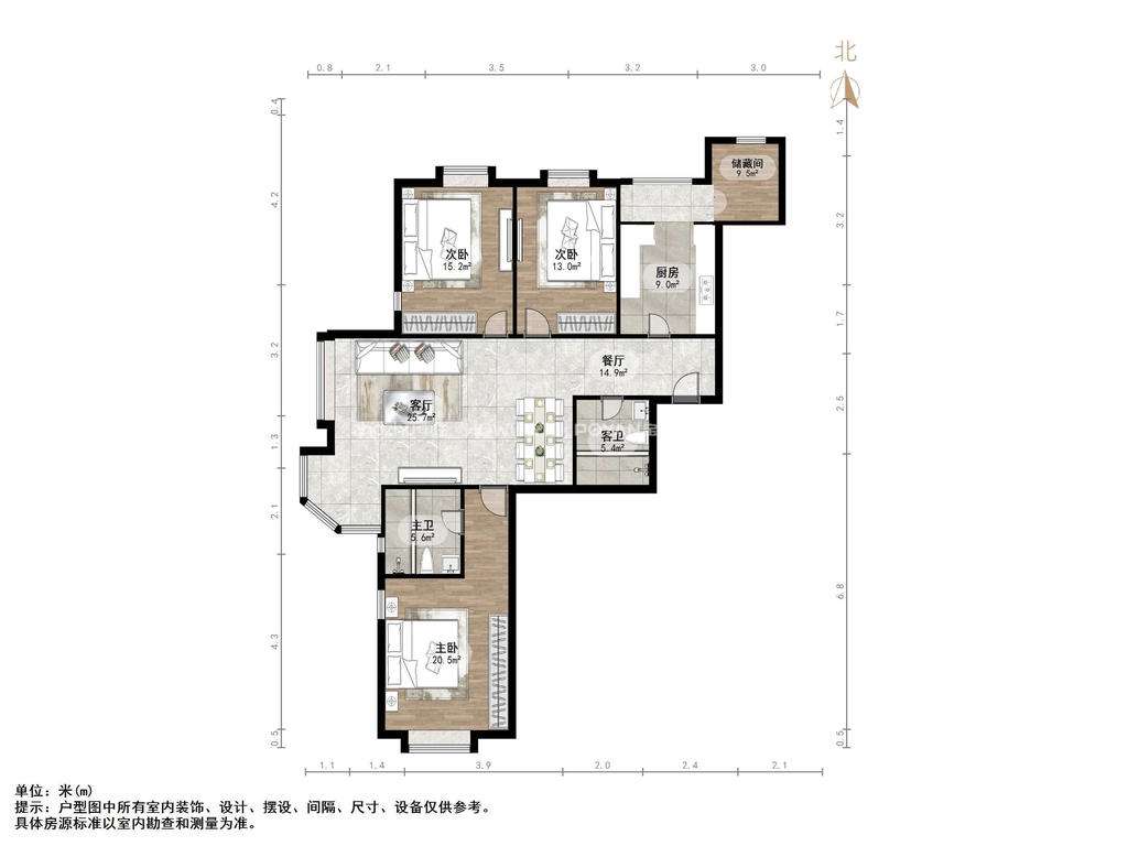厅室3室2厅2卫2阳台