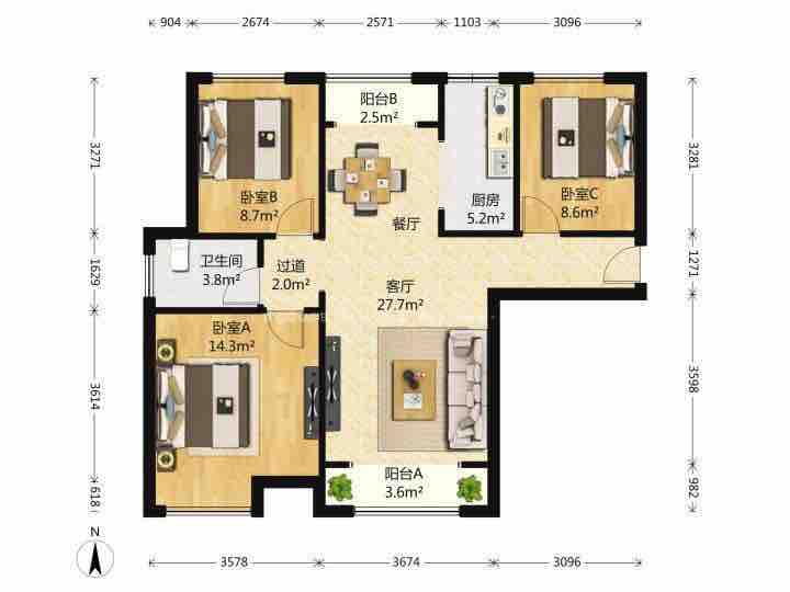 厅室3室2厅1卫0阳台