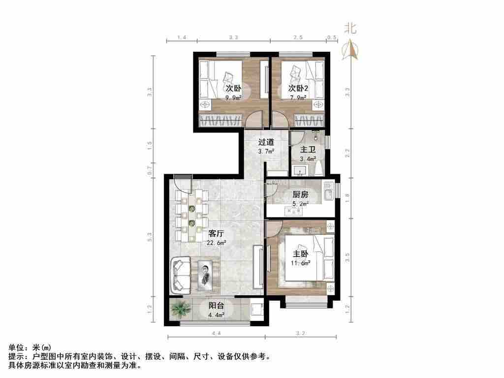2、户型优势:南北卧室,客厅方正好用,单元对讲门,大院传达,安全性高!