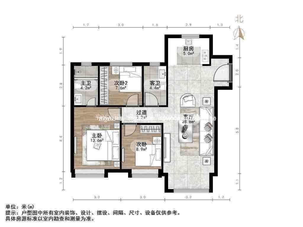 朝向南北 建筑面积99.82㎡
