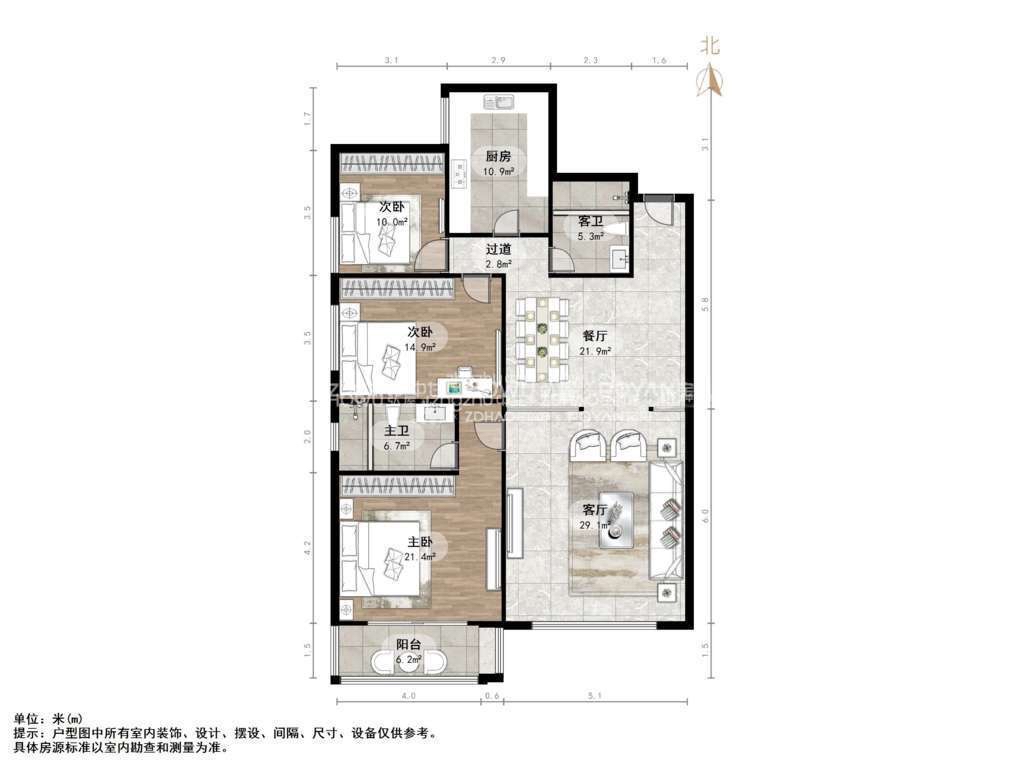 厅室3室2厅2卫2阳台