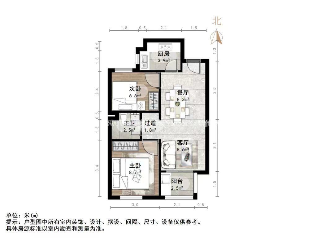 朝向南北 建筑面积73㎡