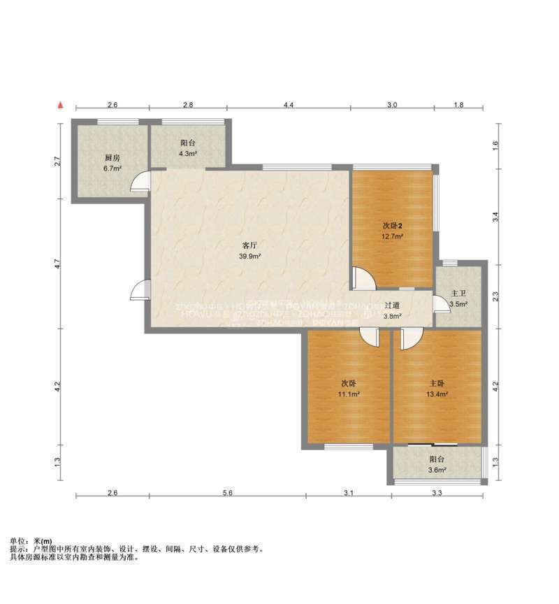 厅室3室2厅1卫1阳台