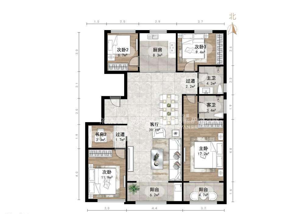 厅室4室2厅2卫1阳台