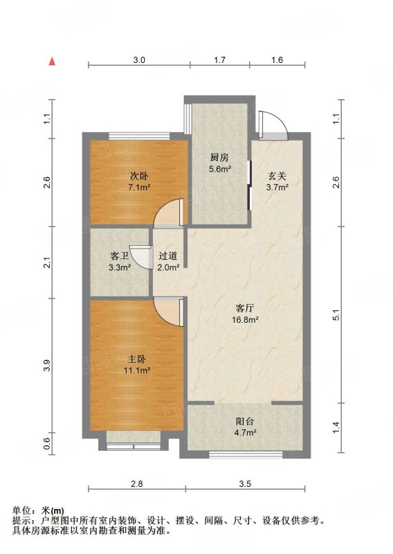 厅室2室2厅1卫1阳台