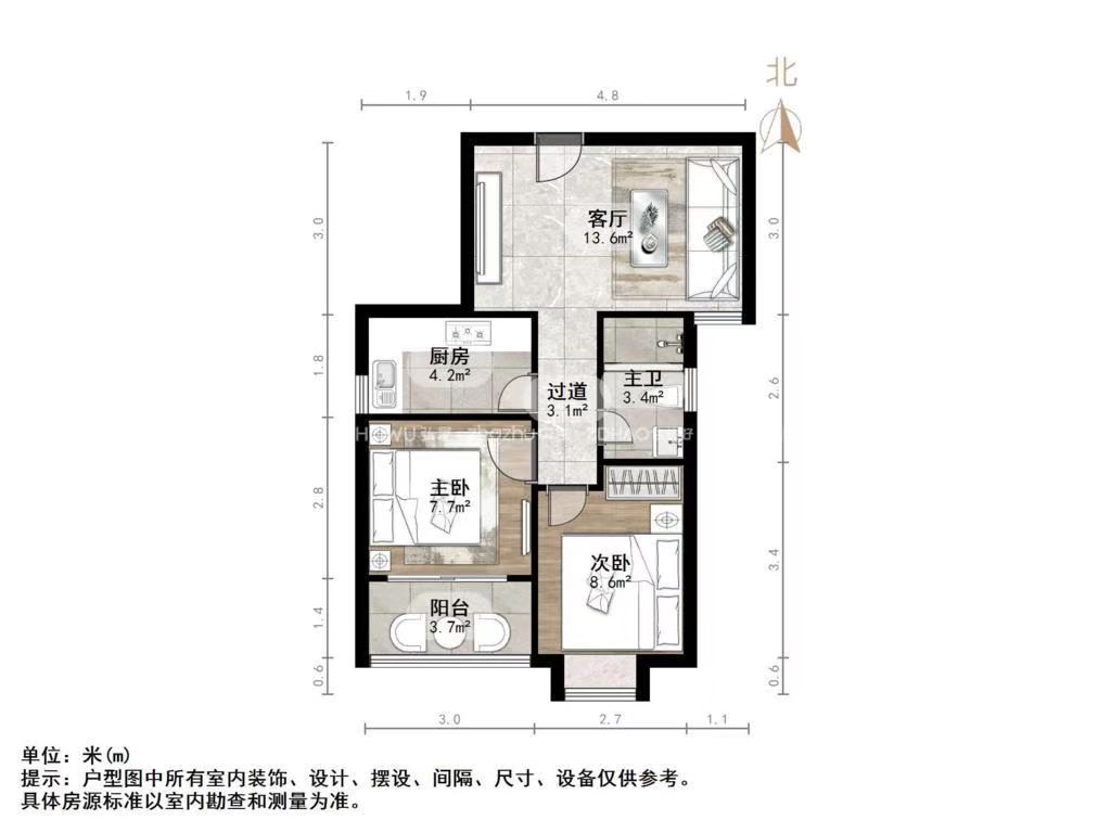 厅室2室1厅1卫1阳台