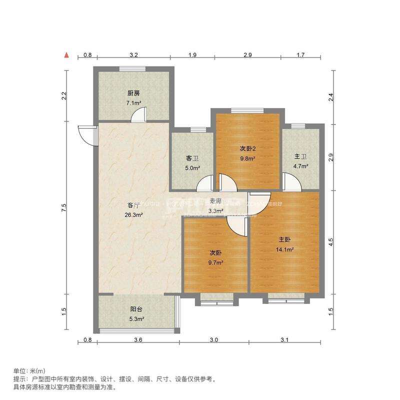 厅室3室2厅2卫1阳台