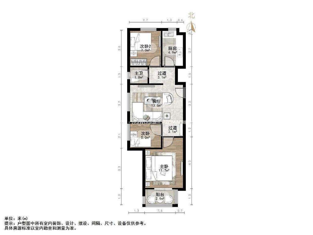 2、户型优势:3室,南北卧室,客厅方正好用,单元对讲门,大院传达,安全性高!