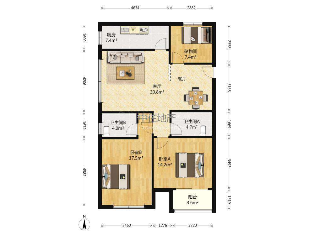 厅室3室2厅2卫1阳台