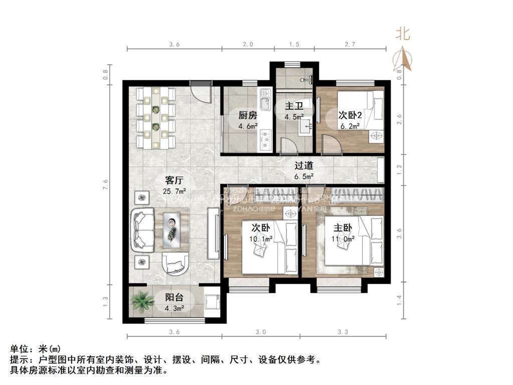 朝向南北 建筑面积103㎡