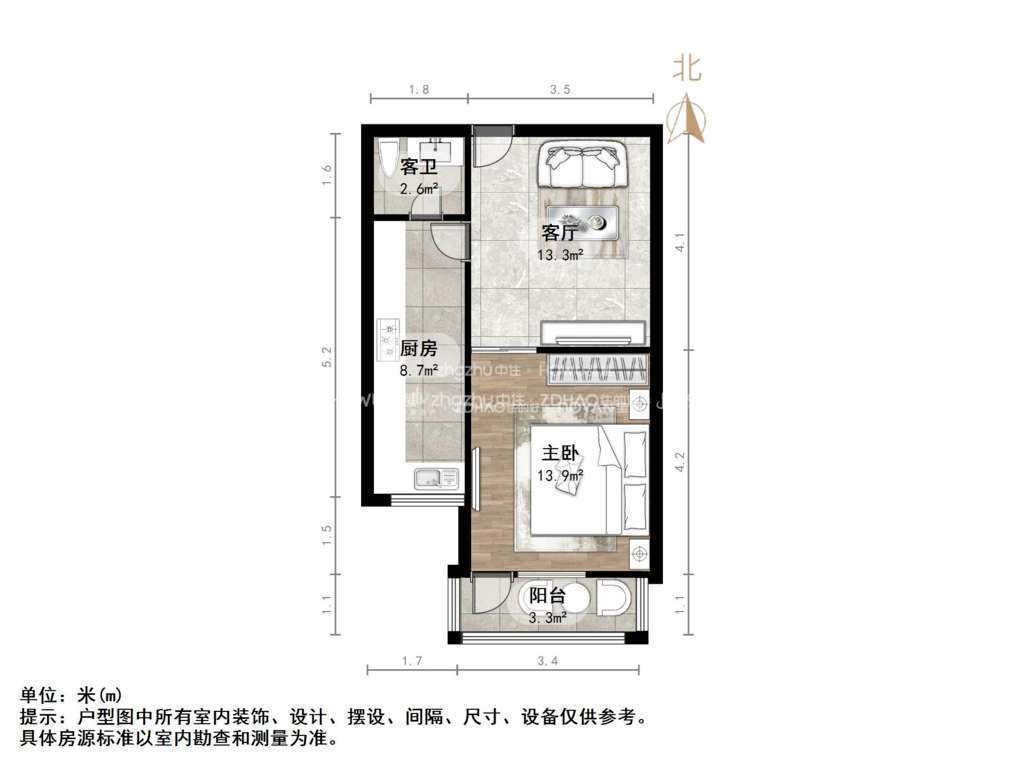 厅室1室1厅1卫1阳台