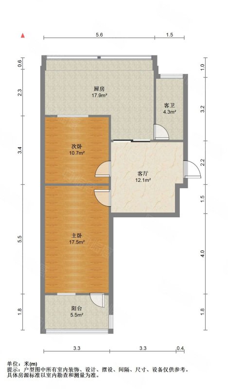 厅室2室1厅1卫2阳台