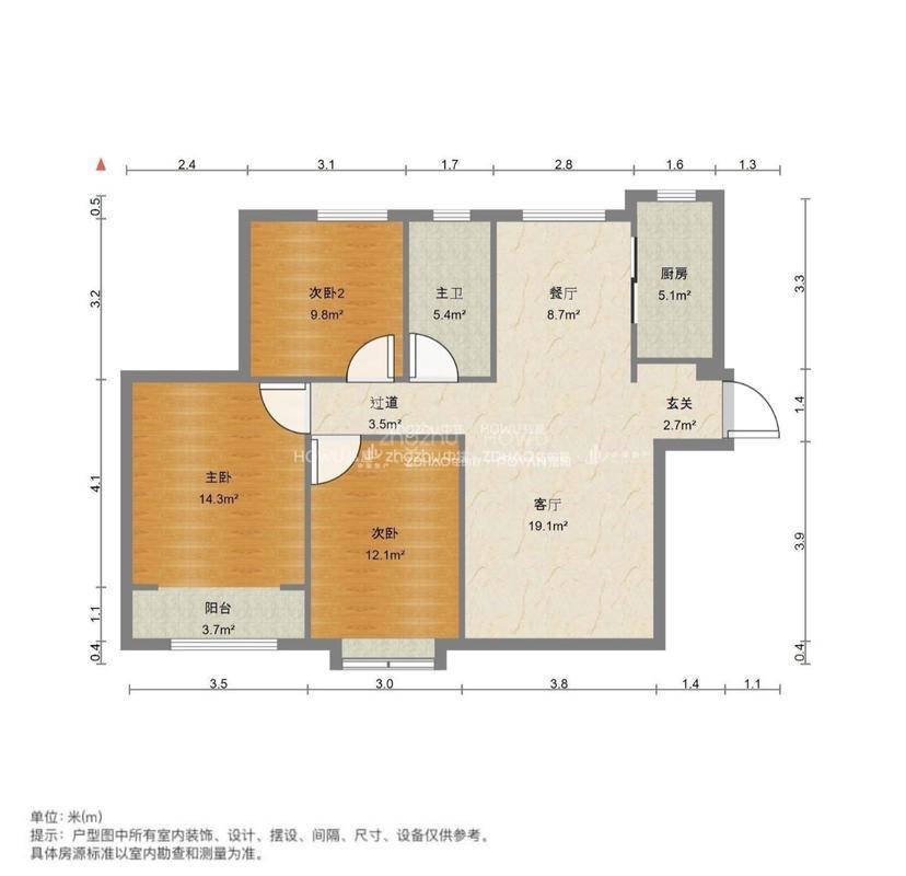 厅室3室2厅1卫2阳台