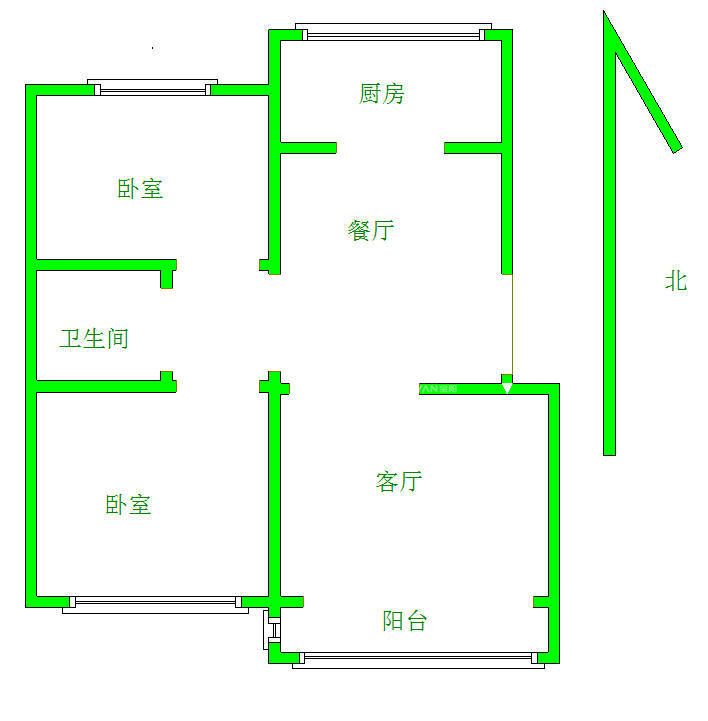 2、户型优势:2室1厅,南北卧室,客厅方正好用,单元对讲门,大院传达,安全性高!