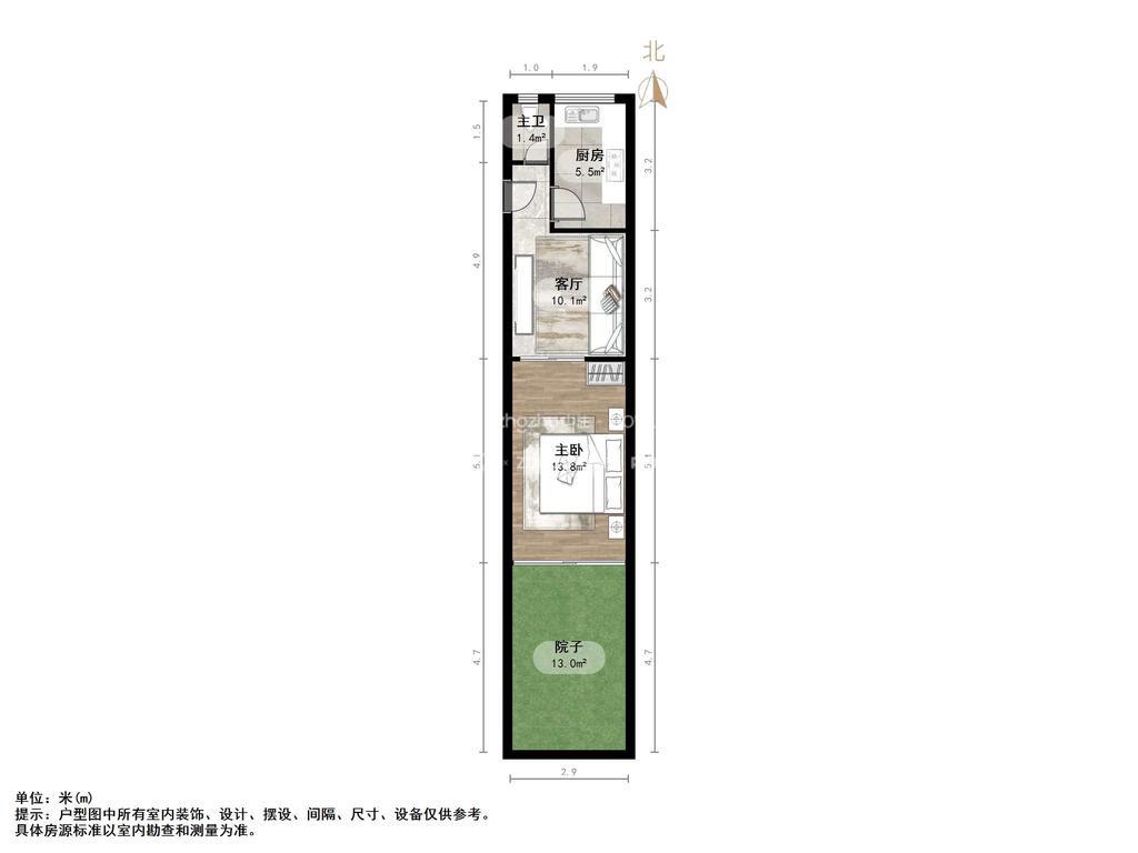 厅室1室1厅1卫1阳台