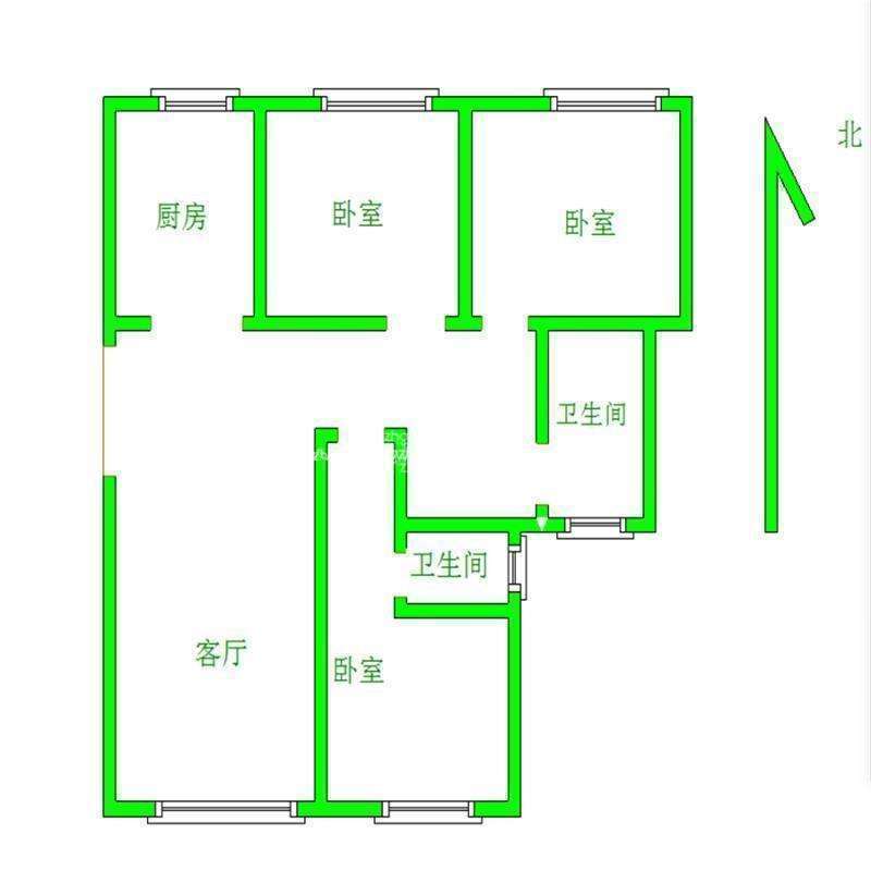 2、户型优势:2室1厅,南北卧室,客厅方正好用,单元对讲门,大院传达,安全性高!