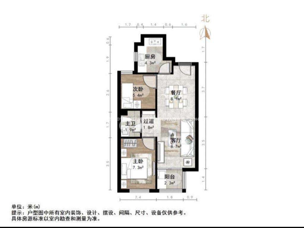 厅室2室1厅1卫1阳台