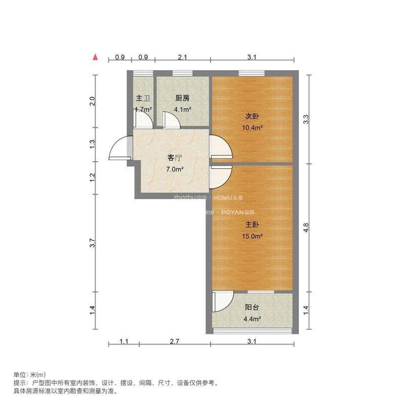 厅室2室1厅1卫1阳台