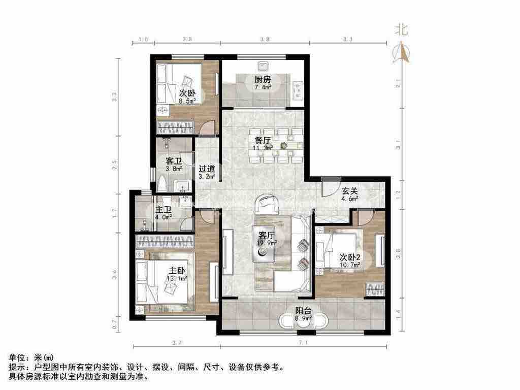 厅室3室2厅1卫1阳台